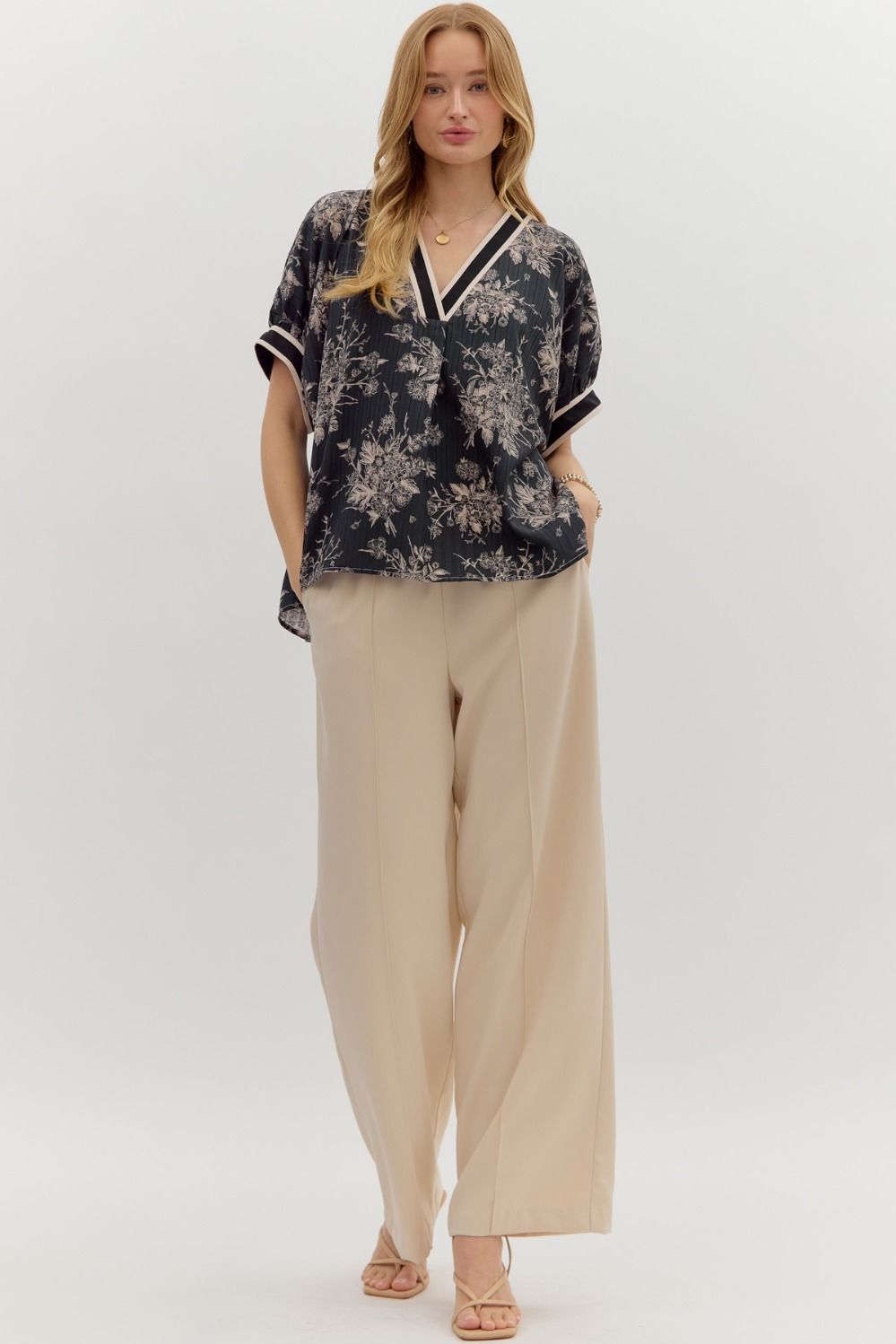 The Willa Top is your new go-to for effortless style with a playful twist. This oversized pullover features a vibrant floral print and colorful band accents that brighten any outfit. Its short dolman sleeves and lightweight woven fabric keep you comfortable and cool, while the non-sheer polyester ensures easy wear. Perfect for adding a splash of fun to your wardrobe!
