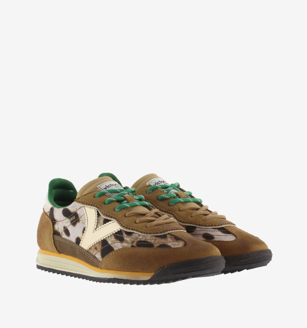 Bring a wild twist to your step with the Women's Saturn Animal sneakers! Featuring a lively mix of nylon animal print, suede, and synthetic panels, these shoes are as playful as they are stylish. Shiny metallic details on the side and heel catch the eye, while the white leather-effect logo adds a crisp contrast. Double laces—one matching, one speckled—let you mix and match your look. The two-tone sole and black serrated tread offer extra grip, so you can strut confidently wherever you go.