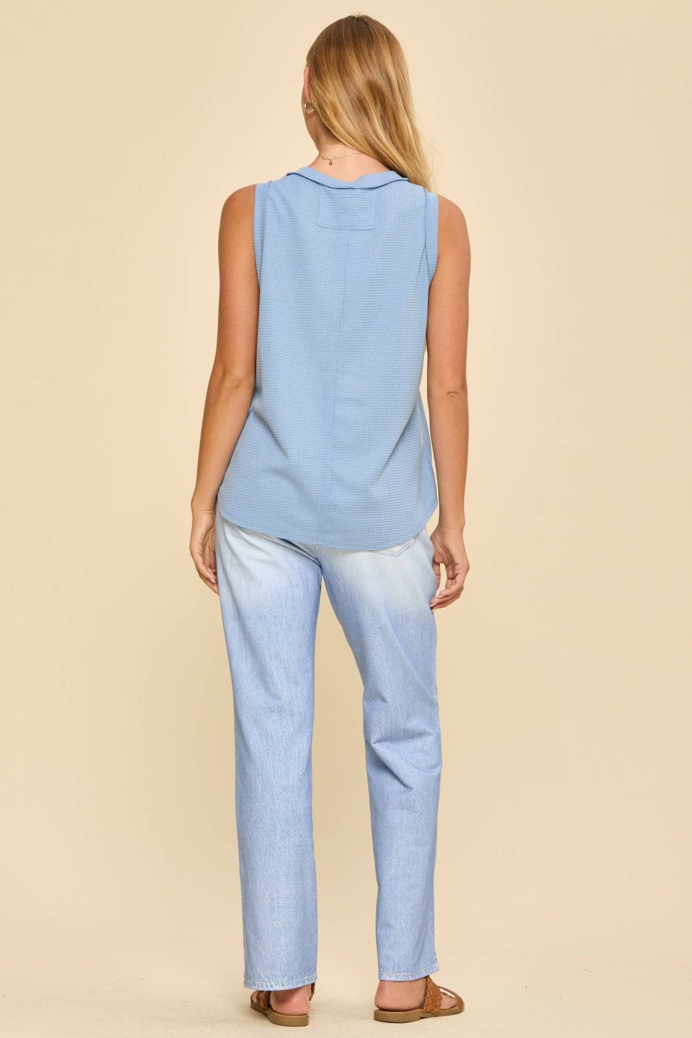 Made from a soft, stretchy knit, this tank is perfect for layering or wearing solo on warmer days. Effortless, versatile, and a little unexpected… just how we like it.