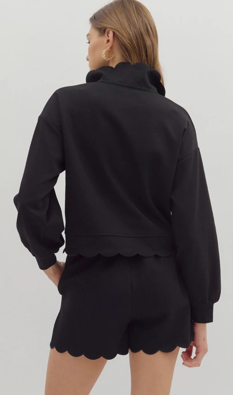 This Taegan Top is a lightweight, knit pullover designed for understated elegance and comfort. Featuring a solid color with a snap button closure and an embroidered scallop edge finish, it delivers refined detailing without bulk. The unlined construction ensures breathability while maintaining opacity, making it suitable for layering or wearing alone in various seasons.